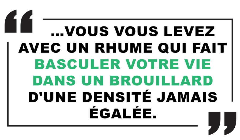 Fermez les yeux et imaginez que vous avez treize ans. Vous allez à l’école, vous sortez avec vos amis, ou vous campez avec les scouts. Puis un matin, vous vous levez avec un rhume qui fait basculer votre vie dans un brouillard d’une densité jamais égalée.