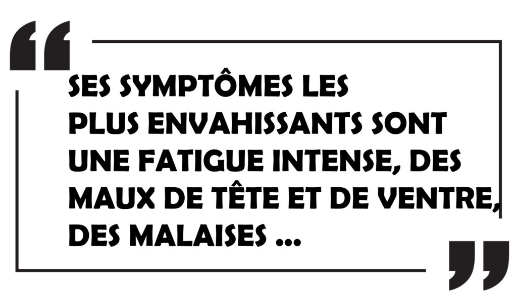 Souffre d’une fatigue intense et de troubles de la concentration. Il ne fréquente l’école qu’à temps partiel, ce qui nuit à ses relations avec ses camarades. Après un effort, un examen ou une journée trop longue, il se retrouve alité, épuisé, nauséeux, avec des maux de tête.